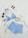 SHEIN Swim 女士纯色休闲比基尼三角裤泳衣套装