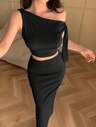 abyoxi 纯色深 V 领露背系带短款背心上衣和修身褶皱侧开衩长裙,时尚两件套