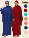 女士加大码非洲花卉长袍伊斯兰祈祷服,配头巾,长袖面纱衣服