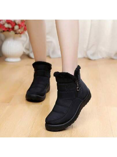 2026冬季新款女士保暖内衬休闲雪地靴,保暖运动短靴,加大码43码 - 黑色 - 查看 1
