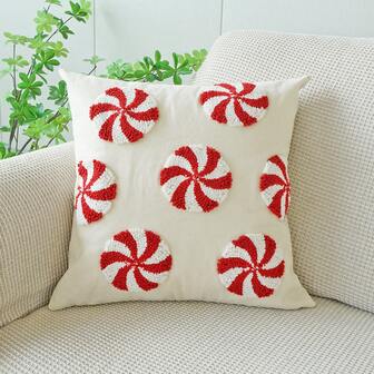 1 件圣诞节拐杖糖元素毛绒枕套,节日家居装饰靠垫套,适用于卧室抱枕