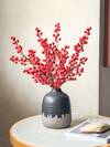 1 件/3 件人造红色浆果茎 19.7 英寸防水浆果枝用于花环装饰插花家居节日婚礼 DIY 工艺品装饰、情人节、礼物