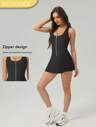 GOSOUER 女式银色拉链工字背心带罩杯运动瑜伽网球裙内置短款健身通勤舒适运动裙