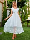 Simplee 蕾絲拼接荷葉邊繫腰帶連衣裙