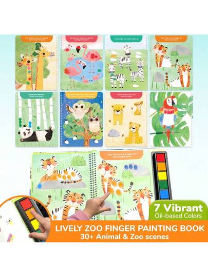 beartale 适合女孩和男孩的 7 色手指画书、适合儿童的动物园主题手指画艺术套装、手指画手绘、适合幼儿的农场动物和生活学习、早期教育忙碌书、感官和匹配活动书、儿童 DIY 创意、儿童 DIY 玩具、儿童 DIY 礼物、儿童 DIY 项目、学校、学生、夏季、返校礼物 - 彩色 - 查看 7