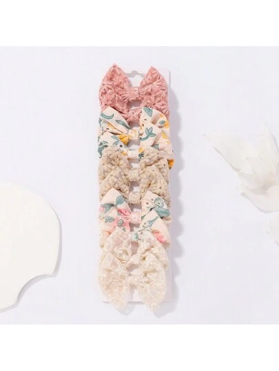 bilicaca 10 件/套兒童花布蝴蝶結髮夾,女孩簡約甜美風格,旅行馬尾髮夾,顏色隨機 - 彩色 - 查看 6