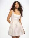 MISSGUIDED 优雅修身喇叭迷你连衣裙方领锦缎粉色珍珠婚礼宾客春夏特殊场合派对百褶裙