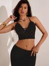 Opulessa 2 件女士海滩度假串珠装饰露背上衣和合身美人鱼裙套装