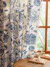 1 件蓝色花卉印花窗帘,优雅复古薄纱窗帘,杆袋,流苏装饰,房间隔断,厨房短窗帘,可水洗,适用于卧室、派对、酒店、厨房、餐厅、客厅、节日装饰,所有季节,秋季,感恩节