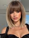 22吋長捲髮帶劉海假髮,自然柔軟的合成纖維頭髮更換假髮,適用於女性日常和派對使用