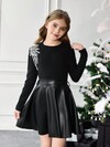 SHEIN 2 件套青少年女孩休闲优雅水钻刺绣针织上衣和 PU 裙套装,适合圣诞节和日常穿着