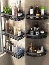 半件装角落淋浴置物架,黑色浴室收纳架,大容量壁挂式,无需钻孔,壁挂式淋浴洗发水架,浴室毛巾架,壁挂式三角支架,粘胶式浴室收纳架,淋浴整理架,淋浴壁挂式洗发水架,适用于浴室和厨房,浴室配件,浴室工具