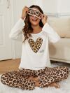CoupledUp 字母和豹纹爱心印花上衣和裤子睡衣套装/含眼罩的睡衣套装,秋冬舒适优雅细节