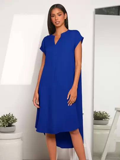 EMERY ROSE 西裝領弧形下擺連衣裙 - 寶藍色 - 查看 1