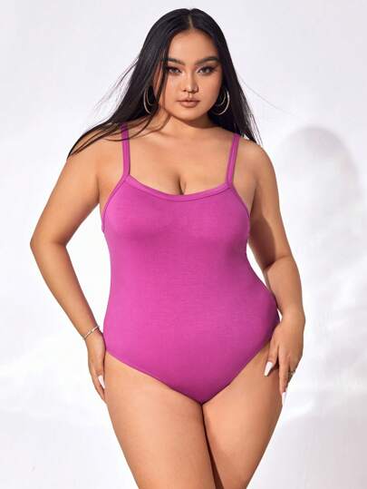 evoluSHEIN X Anitta 大碼素色吊帶連體衣 - 紫色 - 查看 1