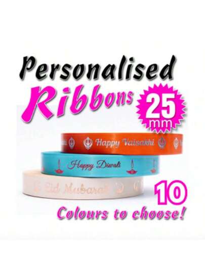定制个性化缎带、礼品包装、生日、婚礼、周年纪念、定制丝带、企业品牌丝带、定制印刷扁平丝带、个性化徽标涤纶丝带、婚礼生日缎带 - 彩色 - 查看 1