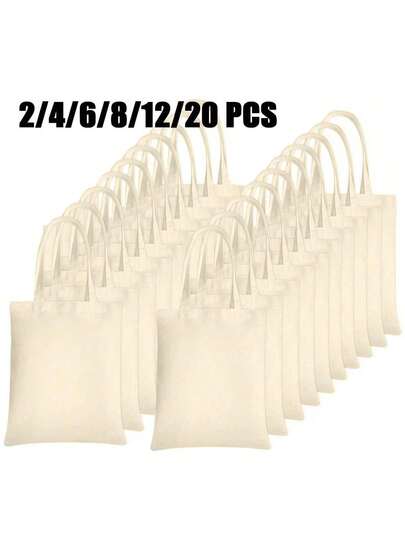 2/4/6/8/12/20 件升华手提袋升华空白手提袋用于装饰、手提袋、轻便中型可重复使用杂货店购物布袋、可重复使用杂货店购物布袋、可重复使用折叠购物单肩包、大容量折叠购物袋、家居用品、适用于 DIY、广告、促销、礼品、活动 - 白色 - 查看 2