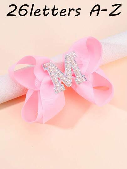 1 件 26 个字母粉色蝴蝶结发夹,适合女孩,织物珍珠字母装饰蝴蝶结发夹,适合女孩,时尚鳄鱼夹发饰,适合女孩派对礼物日常生活 - 粉色 - 查看 1