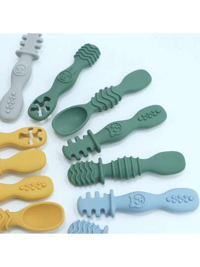 4件套硅胶婴儿喂食勺,独立训练勺,舔勺,适用于6个月以上新生儿 - 彩色 - 查看 10