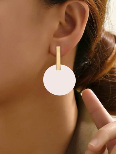 圆形吊坠耳环 - 白色 - 查看 1
