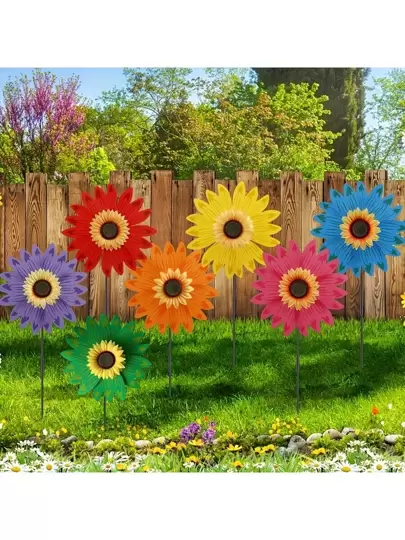 1/2/4 PCS 向日葵草坪风车 向日葵风车 户外风车 彩色花园风车 墓地纪念阳台露台花园庭院装饰风车 - 彩色 - 查看 6