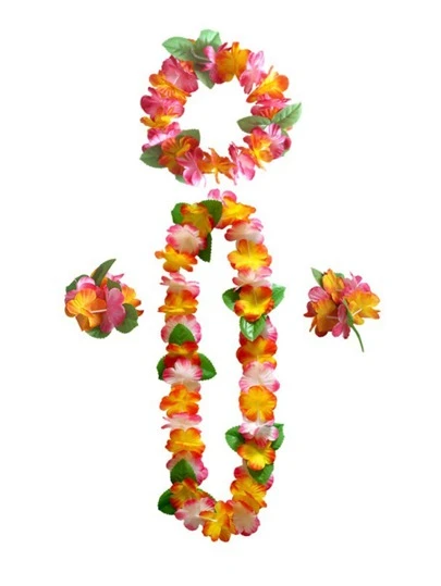 4 件套塑料夏威夷花环套装,花卉花环项链、头带、手链,适合节日和海滩派对(图案随机)、圣诞节 - 立花粉顏色 - 查看 4