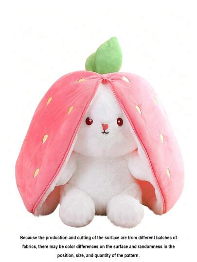 18 公分粉紅色捉迷藏兔子毛絨玩具,復活節胡蘿蔔和草莓設計,可愛的兔子毛絨動物胡蘿蔔袋,拉鍊兔子家居裝飾,復活節兔子禮物 - 粉色 - 查看 5