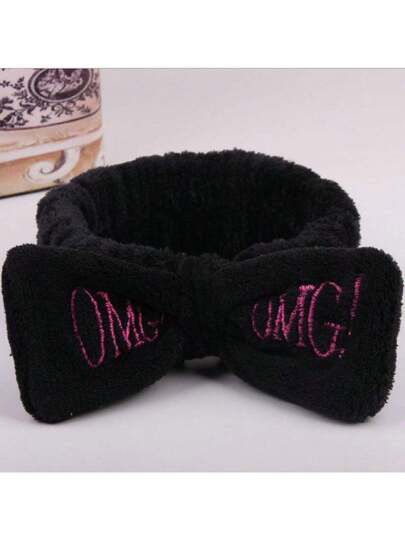 1 Piece Makeup And Bath Headband With Bow Design OMG! - 黑色 - 查看 1