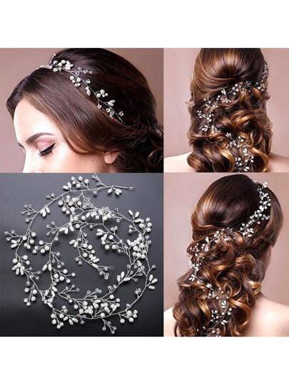 1件女士优雅精美白色水晶仿珍珠铜丝头链,完美搭配婚礼头饰和情人节配饰 - 銀色 - 查看 1