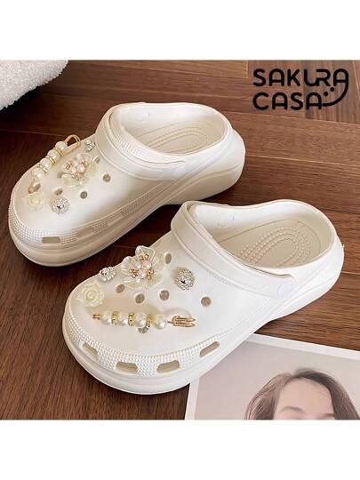 Slippers For Women Non-Slip Sandals EVA Clogs With Gold Flower Pins - 白色 - 查看 1
