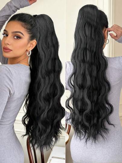 30英寸黑色波浪形合成纤维夹式接发,打造长马尾造型 - 黑色 - 查看 8
