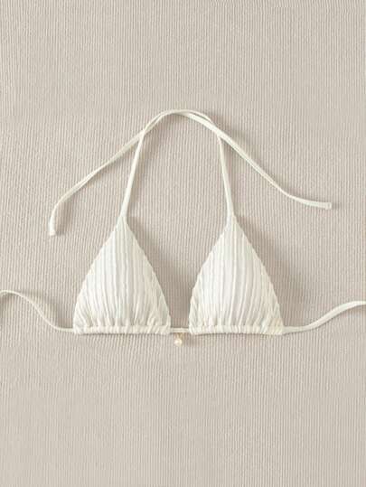 Swim Basics 純色紋理泳衣上衣 - 米色 - 查看 1