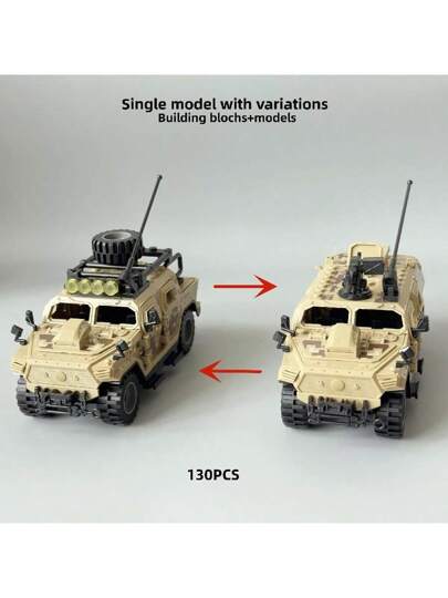 拼装积木沙漠黄色装甲车模型玩具儿童智力开发生日礼物房间装饰 - 杏色 - 查看 1
