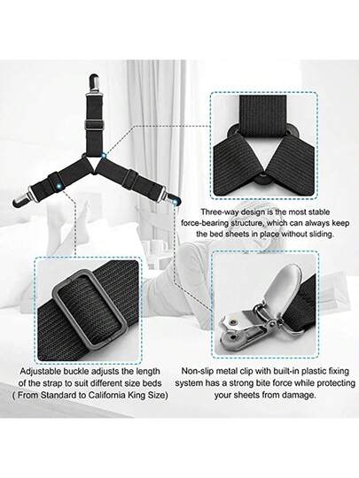 4入組三角床單夾 – 安全固定床角,保持床單不移位 - 黑色 - 查看 5