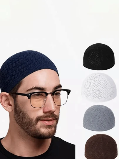 1 件装穆斯林男士祈祷帽、Taqiyah、男士配饰、冬季保暖针织帽、透气弹力骷髅帽、男士伊斯兰祈祷帽、头饰土耳其帽。亲肤舒适针织帽 - 彩色 - 查看 4