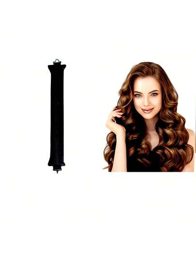 夜間加大尺寸無熱捲髮棒,無熱捲曲紗緞加大型彈性棒,任何髮質適用的柔軟無熱捲髮棒,睡覺捲曲造型工具,一個黑色 - 彩色 - 查看 1
