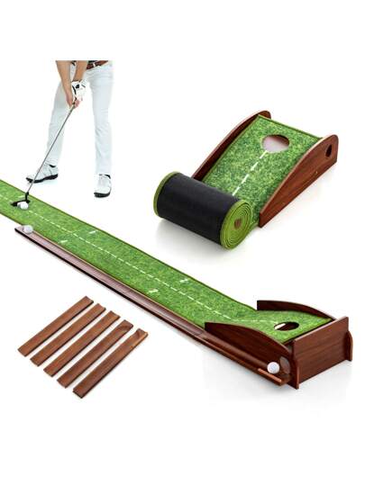 Indoor Outdoor Golf Putting Mat, Putting Green Training Aid W/ Auto Ball Return & 3 Golf Balls For Practice At Home Or In The Office, Golf Accessories Gifts For Golfers Men, 272 CM X 22 CM - 綠色 - 查看 2