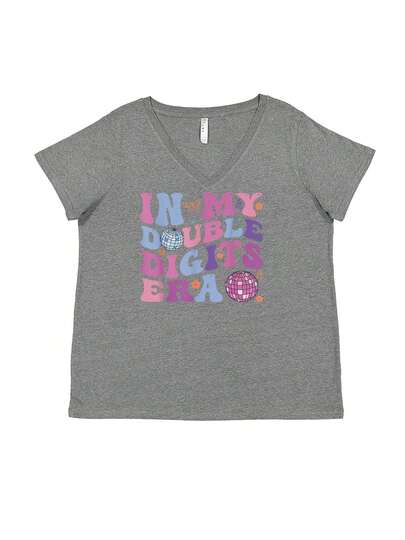 In My Double Digits Era Retro 10 Year Old 10th Birthday Ladies V-Neck T-Shirt - 希瑟灰色 - 查看 10