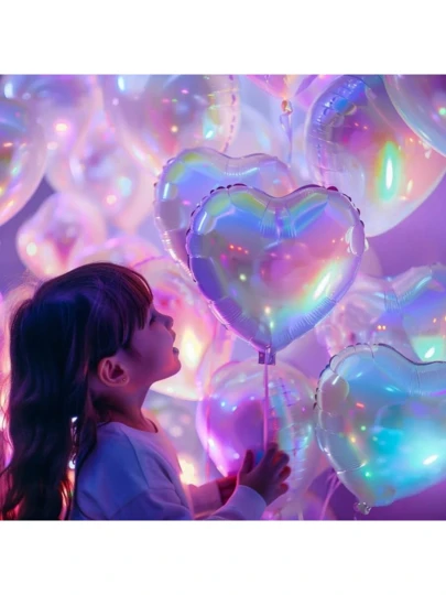 5 件 18 英寸彩虹心形气球适用于迪斯科派对、生日和婚礼装饰 - 彩色 - 查看 3
