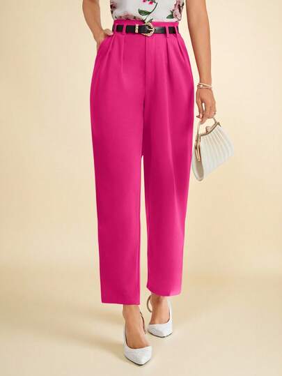 Amorya 秋冬女士简约日常西装裤 - 玫紅色 - 查看 1