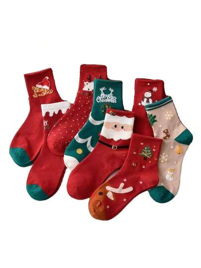 1/3/5 双舒适厚中筒袜,卡通图案,适合全家人,圣诞袜 - 彩色 - 查看 8