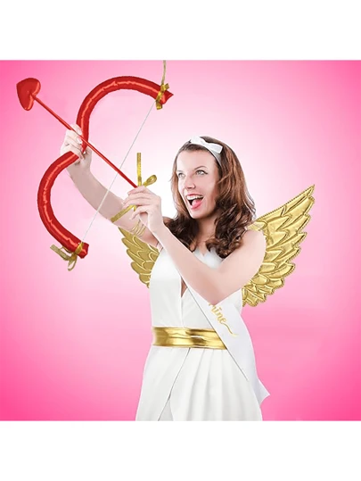 丘比特服装套装带翅膀和弓箭,红色和金色,适用于万圣节角色扮演摄影道具、圣诞节 - 紅色 - 查看 1