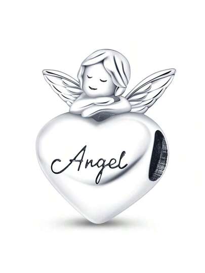 1 件镀银丘比特心形吊坠天使宝宝饰品彩色圆形玻璃珠饰品星空饰品女士手链手镯 DIY 珠宝制作项链吊坠女士珠宝礼物 - 銀色 - 查看 1