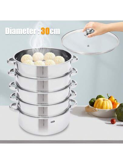 HaroldDol 5-Tier Steamer Pot For Cooking, 16 Inch Steam Pots With Lid Stainless Steel Steaming Pot Cookware With Handle For Vegetable, Dumpling, Stock The Best Gift/Present For Family&Friends Happy Christmas - 銀色 - 查看 1