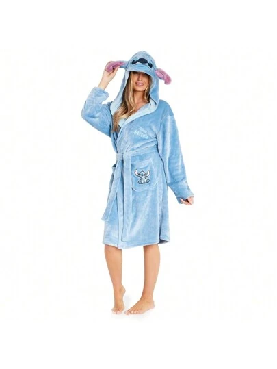 Disney Dressing Gowns Fleece Hooded Robes Stitch Gift - 藍色 - 查看 5