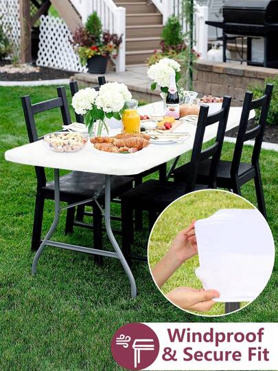 1 件白色氨纶桌布,弹性桌面盖,弹性贴身布艺桌布,可洗桌布,适用于生日婚礼酒店派对活动野餐露营房间桌子装饰,室内外可拉伸桌布用品 - 白色 - 查看 7