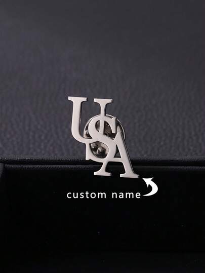 1 件定制缩写名字首字母胸针女士男士个性化不锈钢西装胸针中性定制珠宝男友丈夫圣诞礼物 - 彩色 - 查看 1