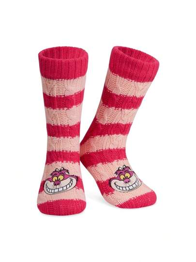 Disney Fluffy Socks And Soft Warm Slipper Non Slip One Size Lounge Wear Gift(Pink Cheshire Cat) - 紅色 - 查看 1
