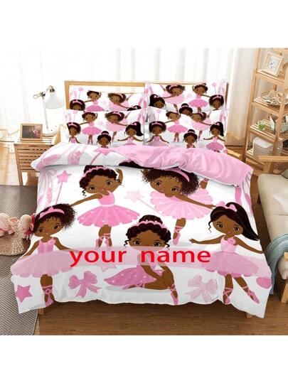 舞动女孩印花图案和定制名字印花羽绒被套套装 - 柔软涤纶,防褪色,拉链开合 - 包括 1 个羽绒被套和 2 个枕套(不含枕芯) - 适合所有季节 - 女孩1 - 查看 5