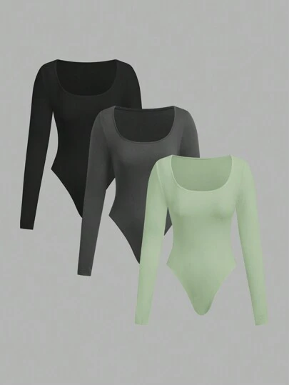 SHEIN EZwear 3 件套女士长袖方领紧身衣套装 - 彩色 - 查看 10